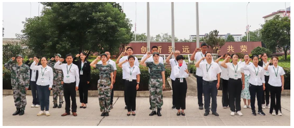 上午8点升国旗仪式。公司护旗队迈着整齐划一、铿锵有力的步伐,昂首挺胸护送国旗入场,伴随着庄严的国歌声,全场肃立,全体员工面向飘扬的五星红旗行注目礼,共同表达对祖国母亲的热爱和祝福。上午8点升国旗仪式。公司护旗队迈着整齐划一、铿锵有力的步伐,昂首挺胸护送国旗入场,伴随着庄严的国歌声,全场肃立,全体员工面向飘扬的五星红旗行注目礼,共同表达对祖国母亲的热爱和祝福。