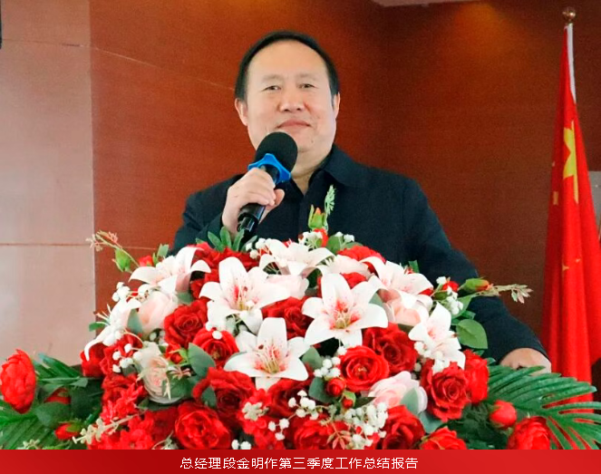 段总全面总结了第三季度生产经营与定性工作任务完成情况,第三季度全体员工锐意进取,书写了公司发展新篇章。段总强调年关冲刺需保持执着、谋势而动、团结拼搏,一定能圆满达成全年目标!